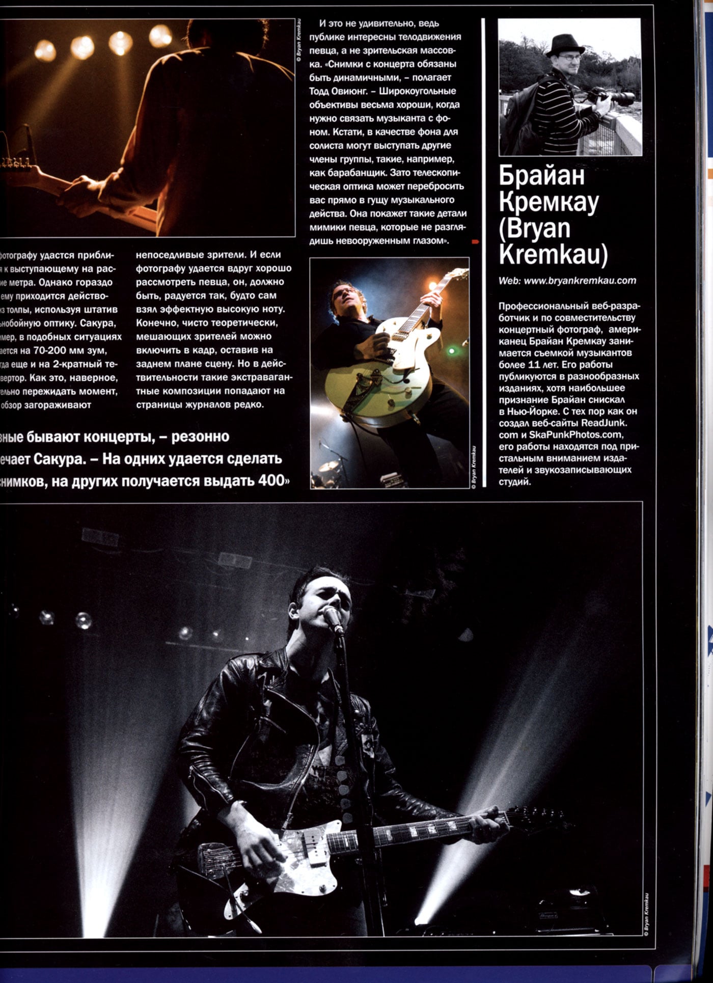 - Photographer Magazine (Ukraine Edition) wrote a feature about concert photography in a recent issue of their magazine. I believe it's issue Oct-Nov 2009. It features myself, Todd Owyoung and Sakura. I'm not sure you'll be able to get a copy of the magazine in any stores in this country but perhaps in Eastern Europe and